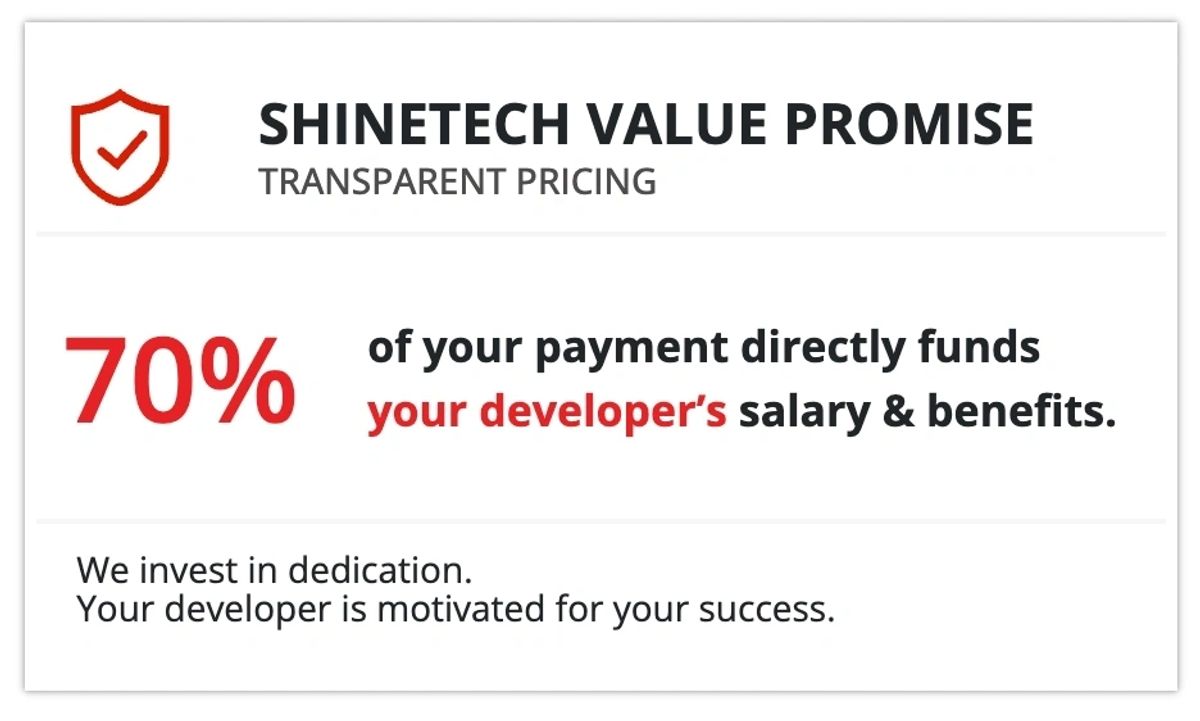 The average developer tenure at Shinetech is over 5 years. That means stability, deep product knowledge, and long-term growth with you.